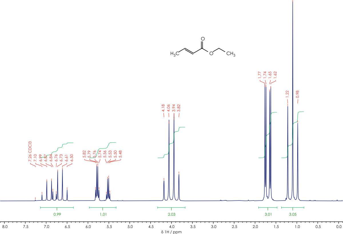 1H-13C gs-HSQC-ME ethyl crotonate in CDCl3