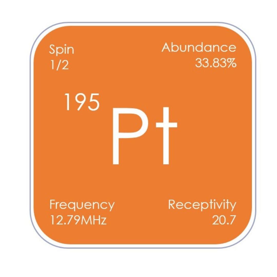 含铂化合物具有广泛应用,包括作为药物和催化剂,195Pt核磁共振广泛用于这些体系的研究。195Pt信号可在15000 ppm的宽范围内被观察到(将D2O中Na2 [PtCl6]的δ Pt定义为0 ppm),其化学位移强烈依赖于铂中心的氧化态和配位环境。