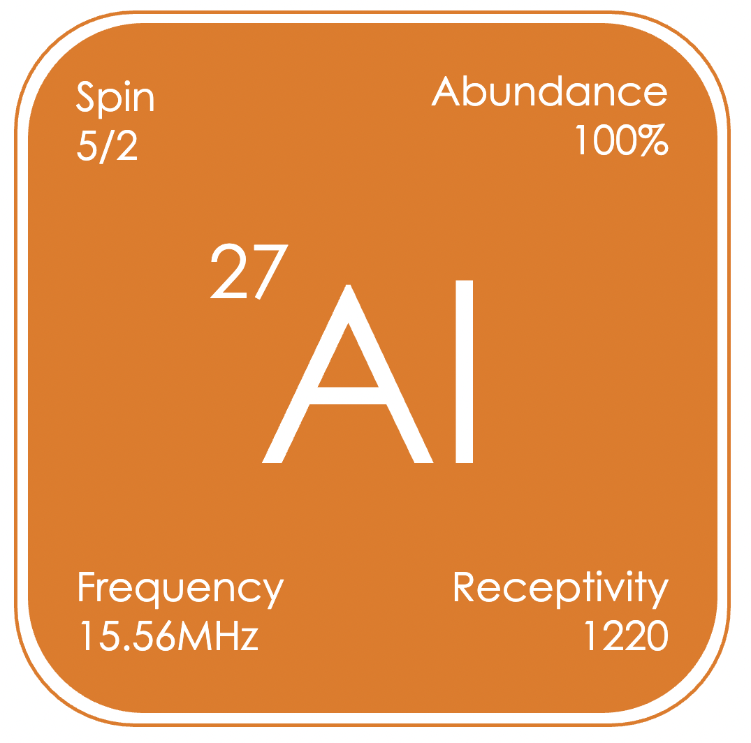 ²⁷Al是一种高接收度原子核,通常在δAl -200~+200 ppm的范围内给出广泛的信号(相对于D2O中的Al(NO₃)₃)。含铝化合物是医药和精细化学品合成过程中的常用试剂和中间体。同时铝还可以用于能源储存,因为它们具有更高的理论能量密度,在地壳中也具有更高的含量,铝离子电池有可能取代锂离子电池。