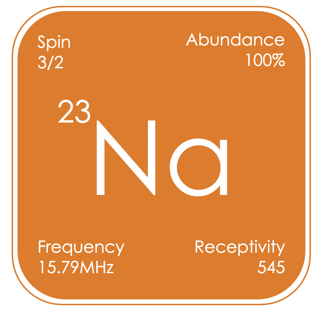 钠是地球上含量第六丰富的元素,并且在生物体内无处不在。而且,含钠化合物是有机金属化学中非常重要的试剂。此外,钠还是非常广泛的物质组成部分,从食品、饮料到药品、石油添加剂和聚合物等。23Na是一个四极核,其线宽强烈依赖于局部对称性和分子的大小。23Na的信号可以在δNa +10~−60 ppm范围内观察到(相对于 D₂O 中的 NaCl)。