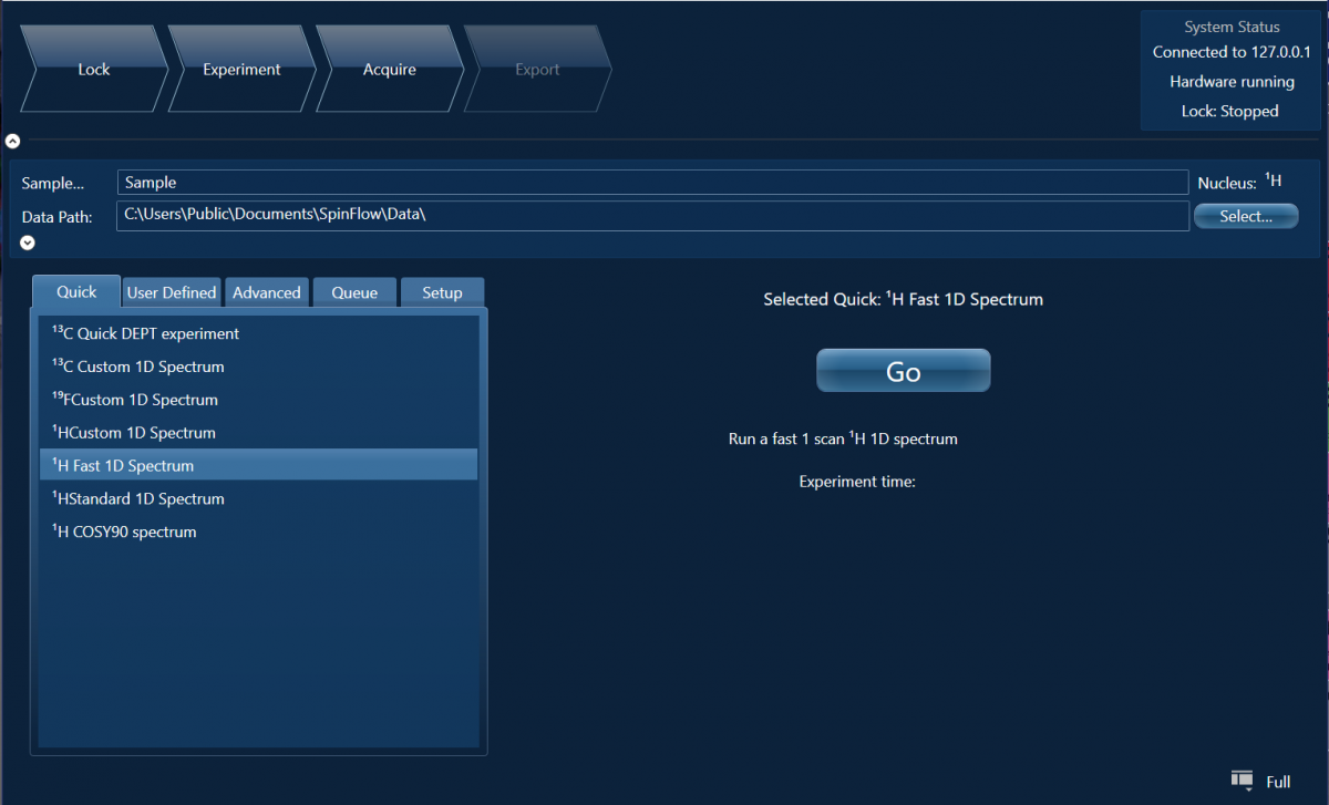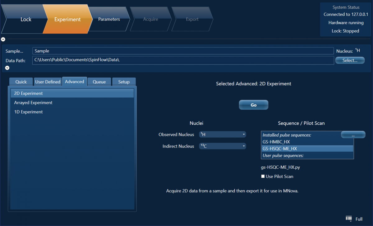 我们的新款SpinFlow软件,使X-Pulse的易用性达到了新高度。采用预定义的“快速”实验,单击一下就可以收集基础的 1D 1H 波谱,甚至包括 13CDEPT在内的常规数据。在新的自定义实验下,经验丰富的用户可以保存自己的序列和参数,将来可以再次运行,确保了前后一致性,节约了收集数据的时间。